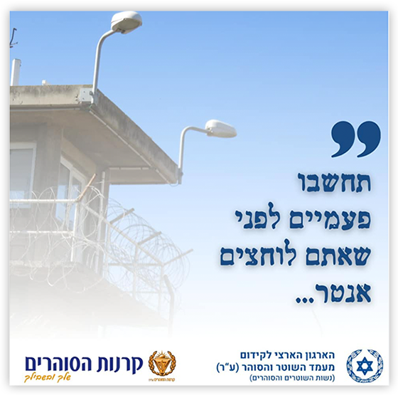 "הרבה ביקורת יש לאחרונה ברשתות החברתיות על השב״ס, אבל תגידו, עם יד על הלב, אתם באמת מסוגלים לתאר לעצמכם מה זה אומר להיות סוהר או סוהרת? לקום כל בוקר ולצאת לעבודה מול העבריינים הכי מסוכנים במדינה? שעה-שעה, 24/7, 365 ימים בשנה… דווקא עכשיו – שולחים לייק ענק ומחזקים את הסוהרים והסוהרות שלנו, המגינים השקופים של ישראל", נכתב בקמפיין